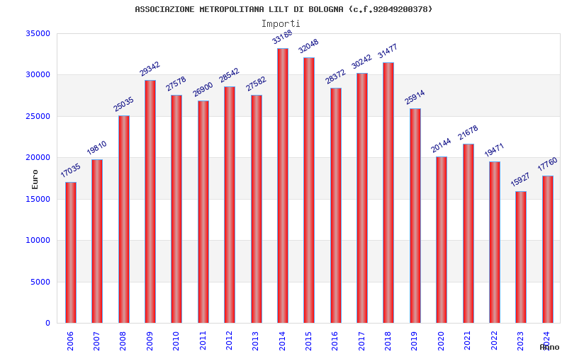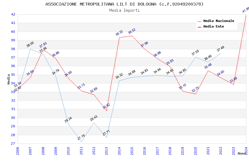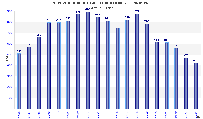 | Anno | Firme | Importi | Media | Naz. | Reg. | Prov. | Comu. |