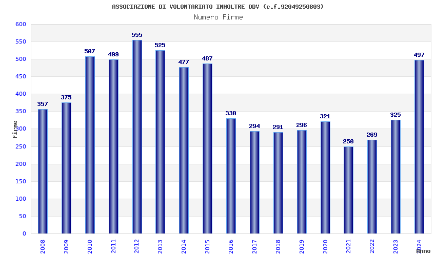 | Anno | Firme | Importi | Media | Naz. | Reg. | Prov. | Comu. |