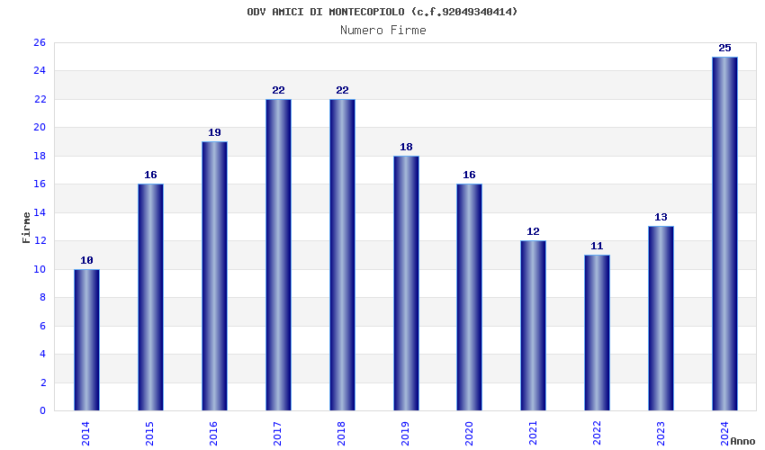 | Anno | Firme | Importi | Media | Naz. | Reg. | Prov. | Comu. |