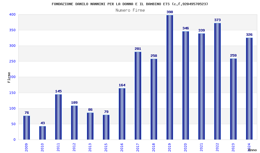 | Anno | Firme | Importi | Media | Naz. | Reg. | Prov. | Comu. |
