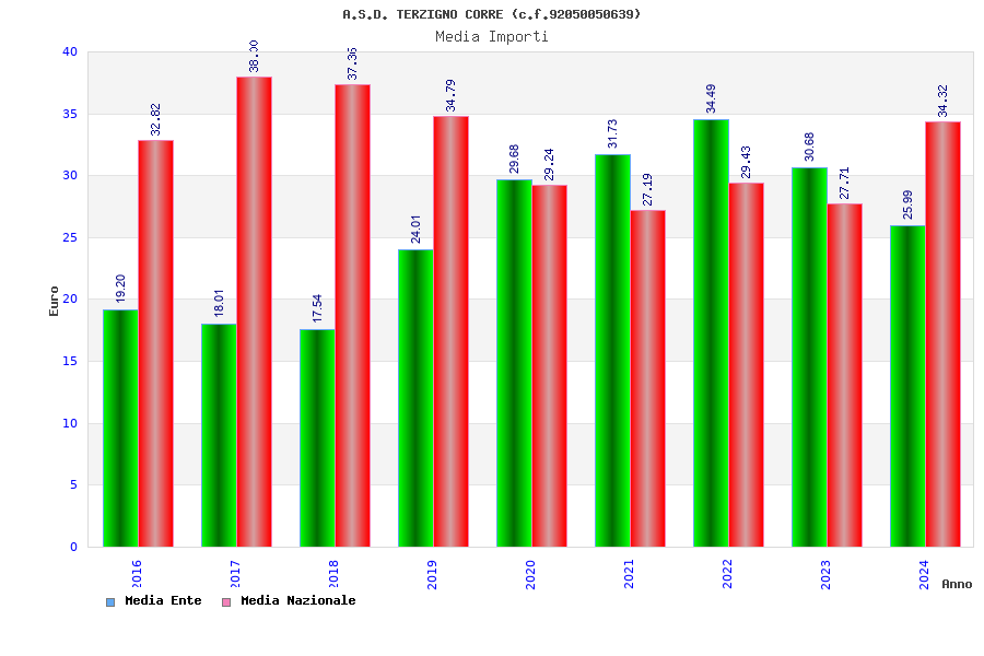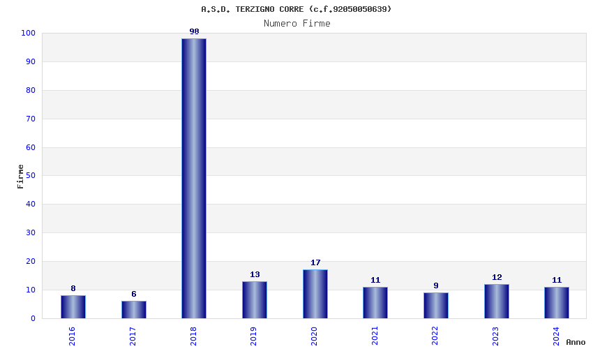 | Anno | Firme | Importi | Media | Naz. | Reg. | Prov. | Comu. |