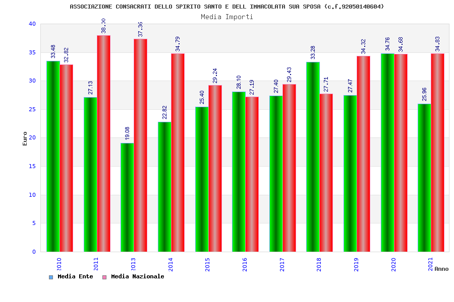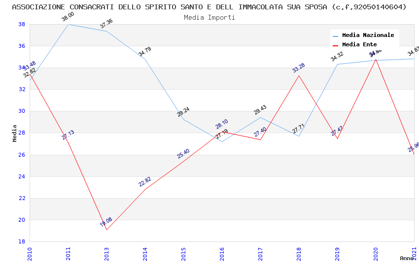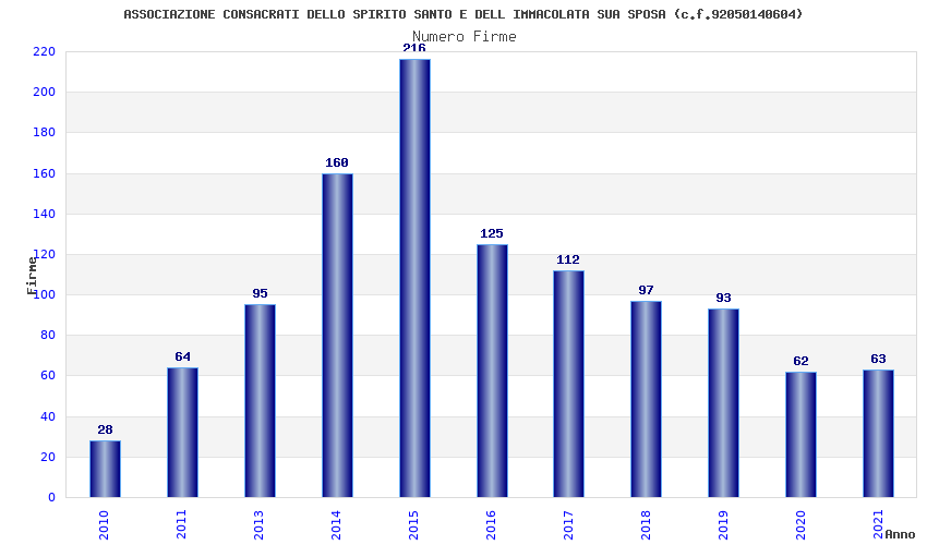 | Anno | Firme | Importi | Media | Naz. | Reg. | Prov. | Comu. |
