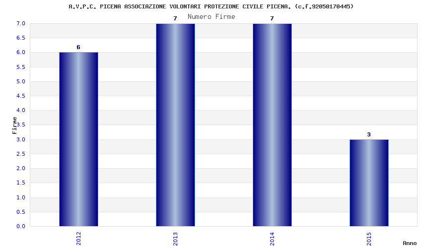 | Anno | Firme | Importi | Media | Naz. | Reg. | Prov. | Comu. |