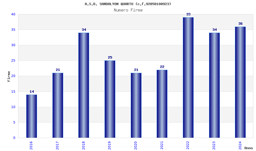 | Anno | Firme | Importi | Media | Naz. | Reg. | Prov. | Comu. |