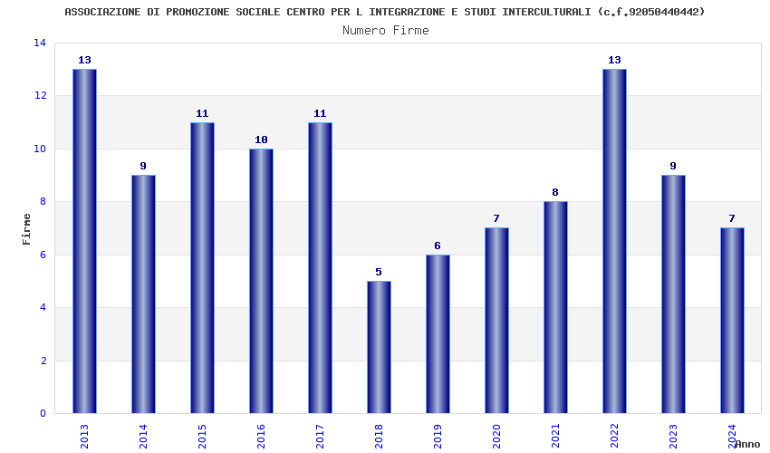 | Anno | Firme | Importi | Media | Naz. | Reg. | Prov. | Comu. |