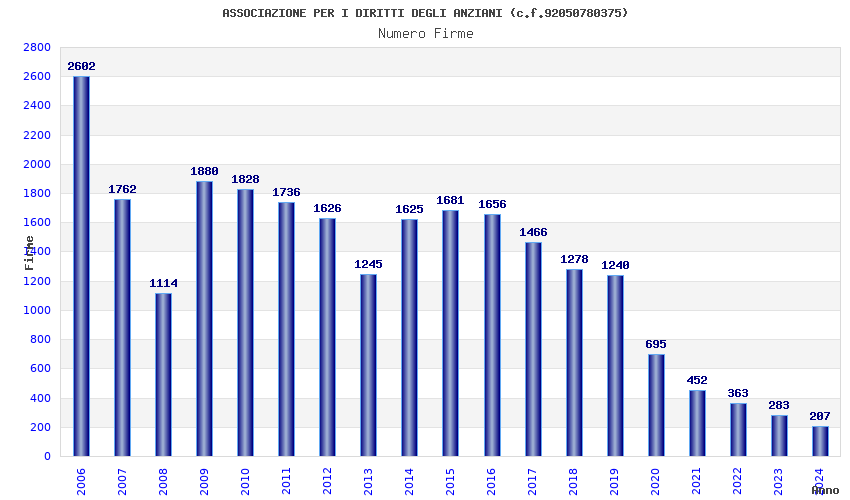 | Anno | Firme | Importi | Media | Naz. | Reg. | Prov. | Comu. |