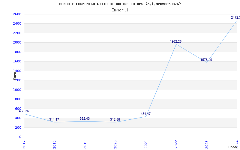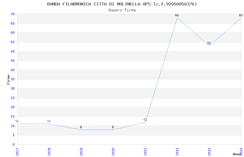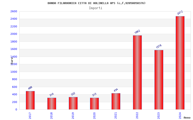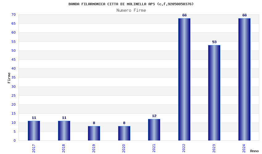 | Anno | Firme | Importi | Media | Naz. | Reg. | Prov. | Comu. |