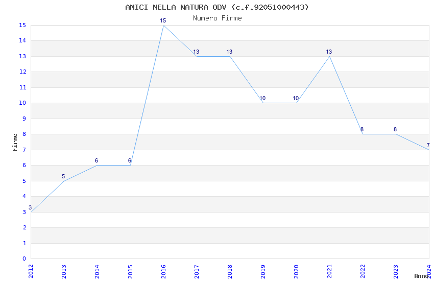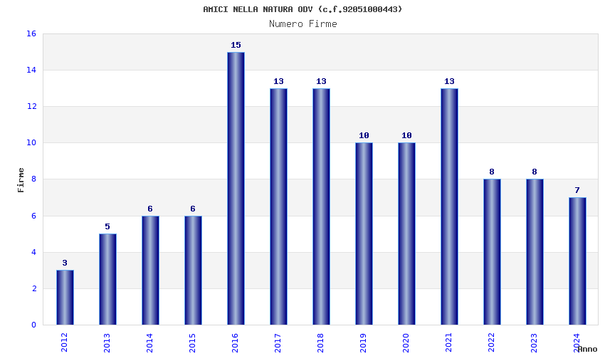 | Anno | Firme | Importi | Media | Naz. | Reg. | Prov. | Comu. |