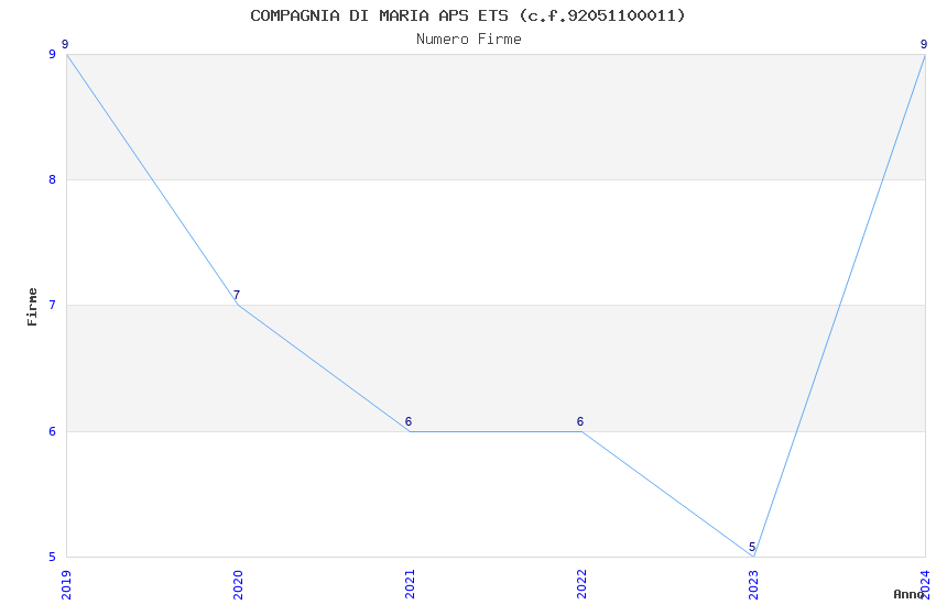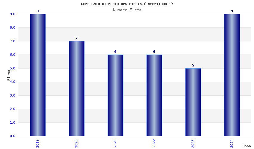 | Anno | Firme | Importi | Media | Naz. | Reg. | Prov. | Comu. |