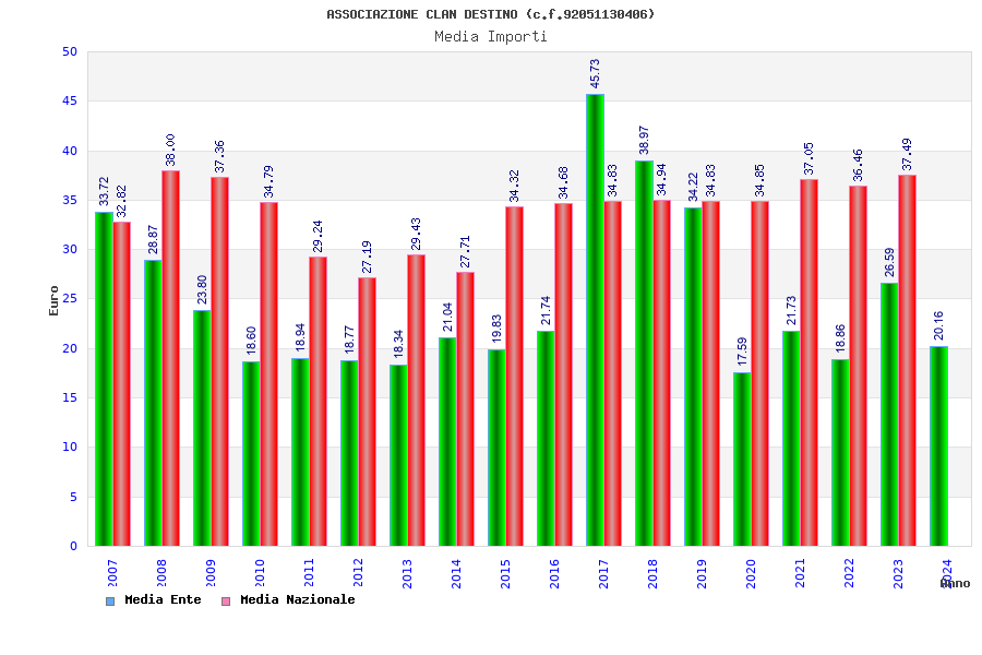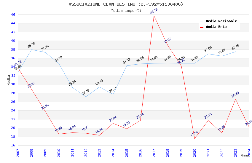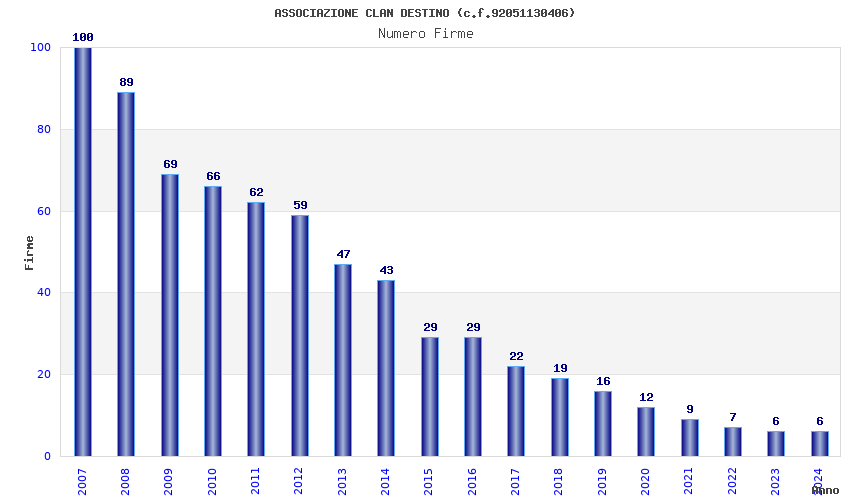 | Anno | Firme | Importi | Media | Naz. | Reg. | Prov. | Comu. |