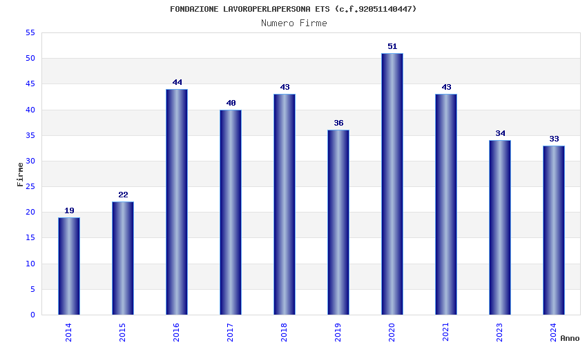 | Anno | Firme | Importi | Media | Naz. | Reg. | Prov. | Comu. |