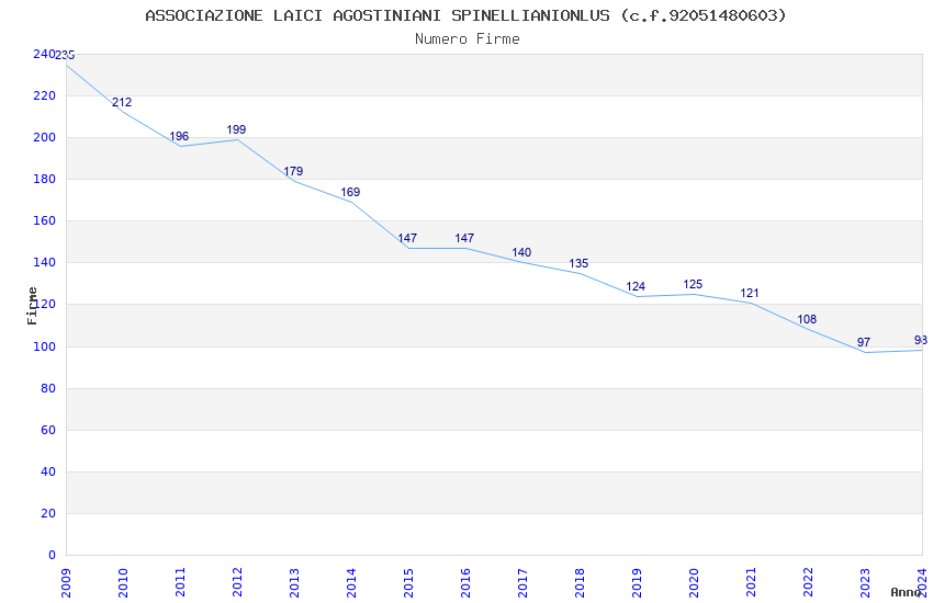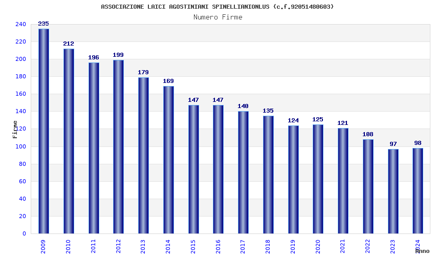 | Anno | Firme | Importi | Media | Naz. | Reg. | Prov. | Comu. |