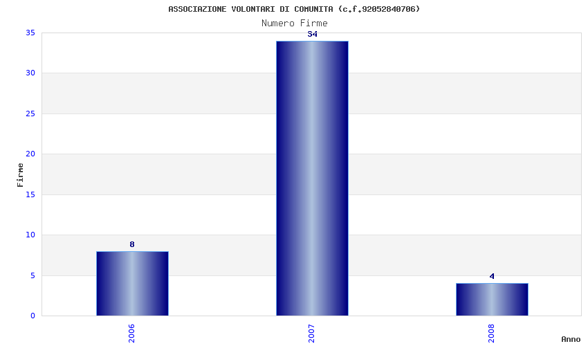 | Anno | Firme | Importi | Media | Naz. | Reg. | Prov. | Comu. |