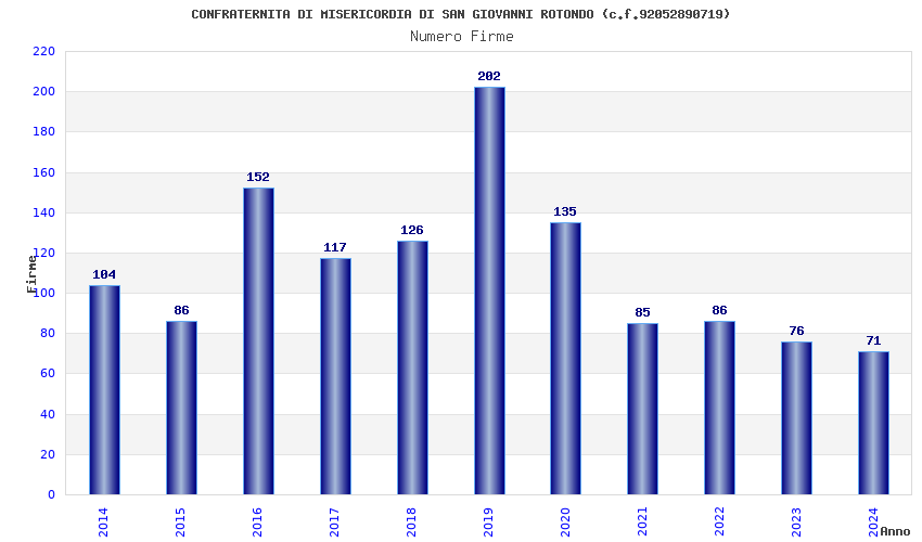 | Anno | Firme | Importi | Media | Naz. | Reg. | Prov. | Comu. |