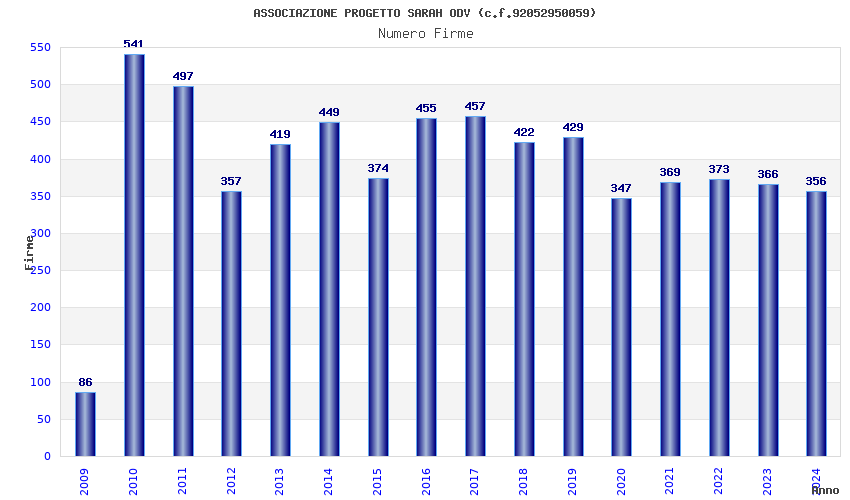 | Anno | Firme | Importi | Media | Naz. | Reg. | Prov. | Comu. |