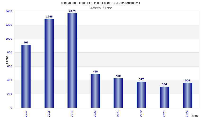 | Anno | Firme | Importi | Media | Naz. | Reg. | Prov. | Comu. |