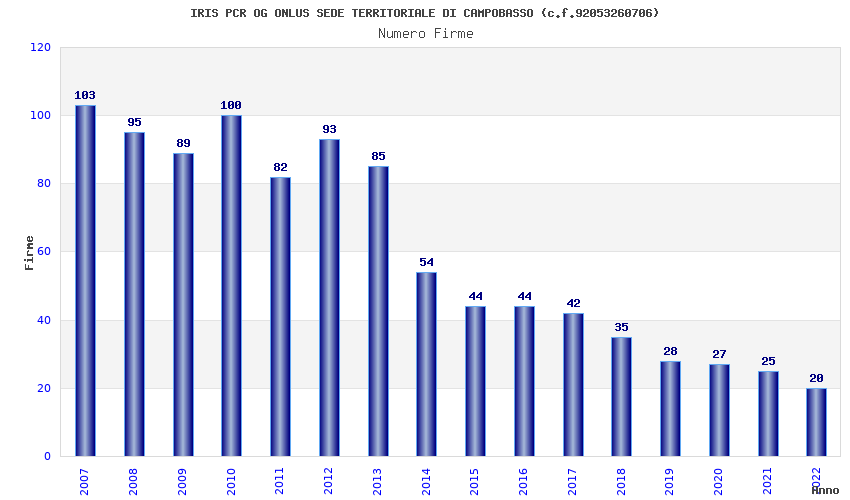 | Anno | Firme | Importi | Media | Naz. | Reg. | Prov. | Comu. |