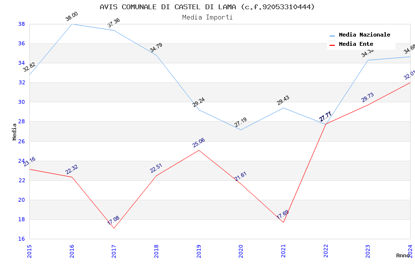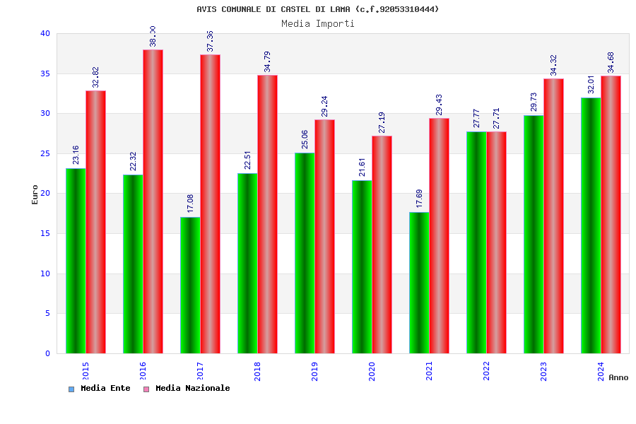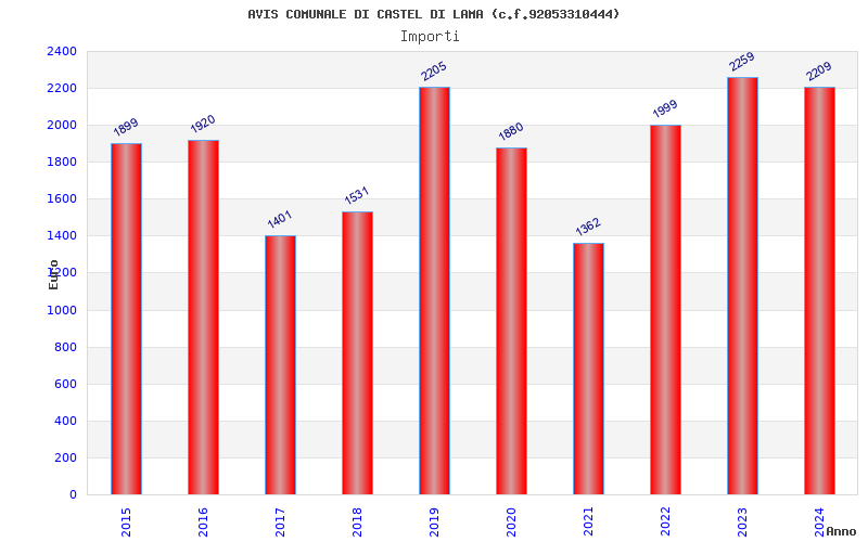 | Anno | Firme | Importi | Media | Naz. | Reg. | Prov. | Comu. |