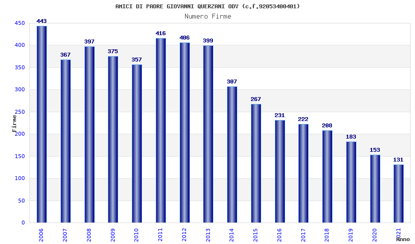| Anno | Firme | Importi | Media | Naz. | Reg. | Prov. | Comu. |