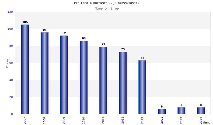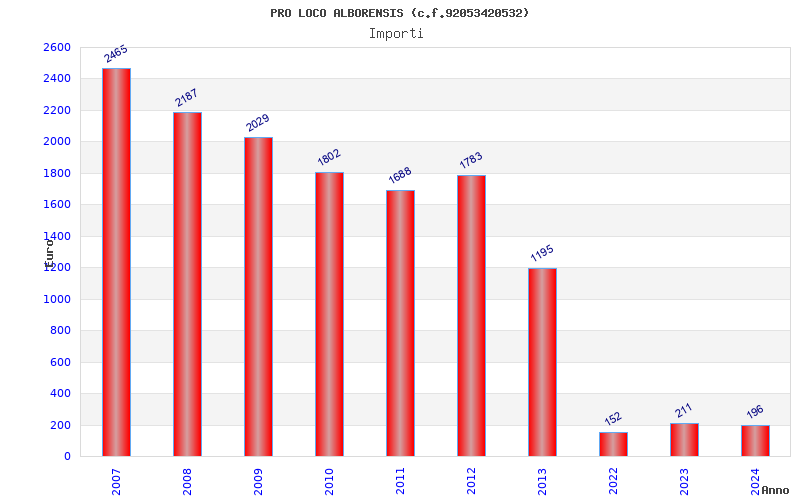 | Anno | Firme | Importi | Media | Naz. | Reg. | Prov. | Comu. |
