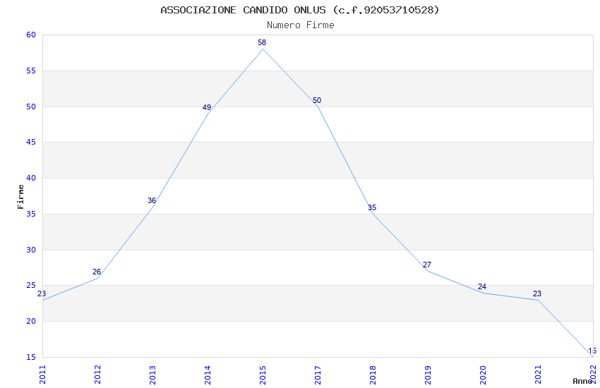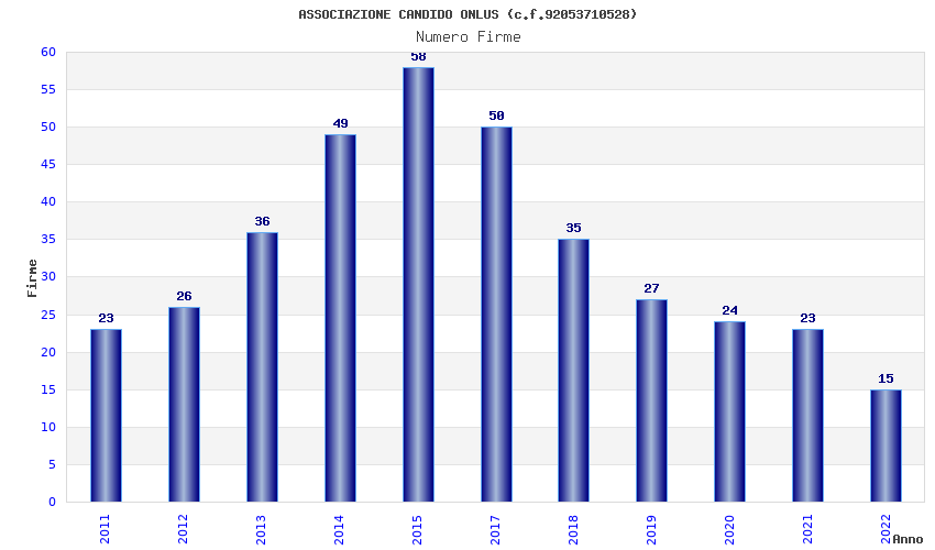 | Anno | Firme | Importi | Media | Naz. | Reg. | Prov. | Comu. |