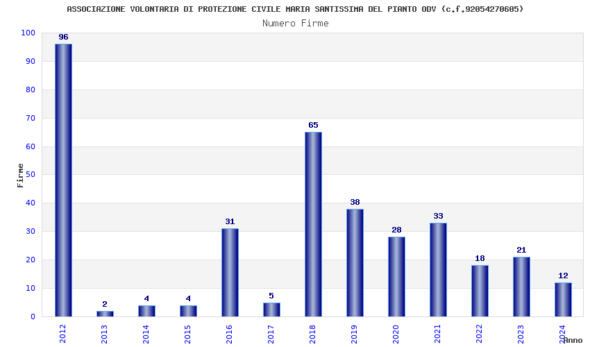 | 2012 | 96 | 1.315,52 | 13,70 | 23.120 | 2.204 | 103 | 5 |
