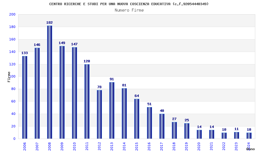 | Anno | Firme | Importi | Media | Naz. | Reg. | Prov. | Comu. |