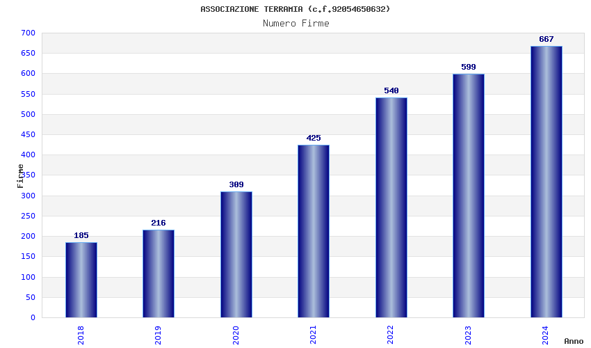 | 2018 | 185 | 2.659,66 | 14,38 | 19.248 | 1.121 | 594 | 7 |