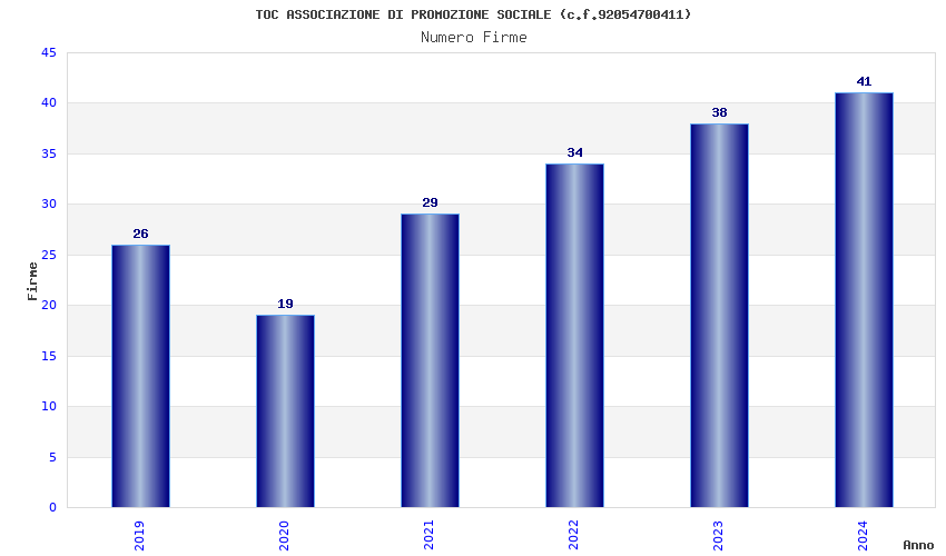 | Anno | Firme | Importi | Media | Naz. | Reg. | Prov. | Comu. |