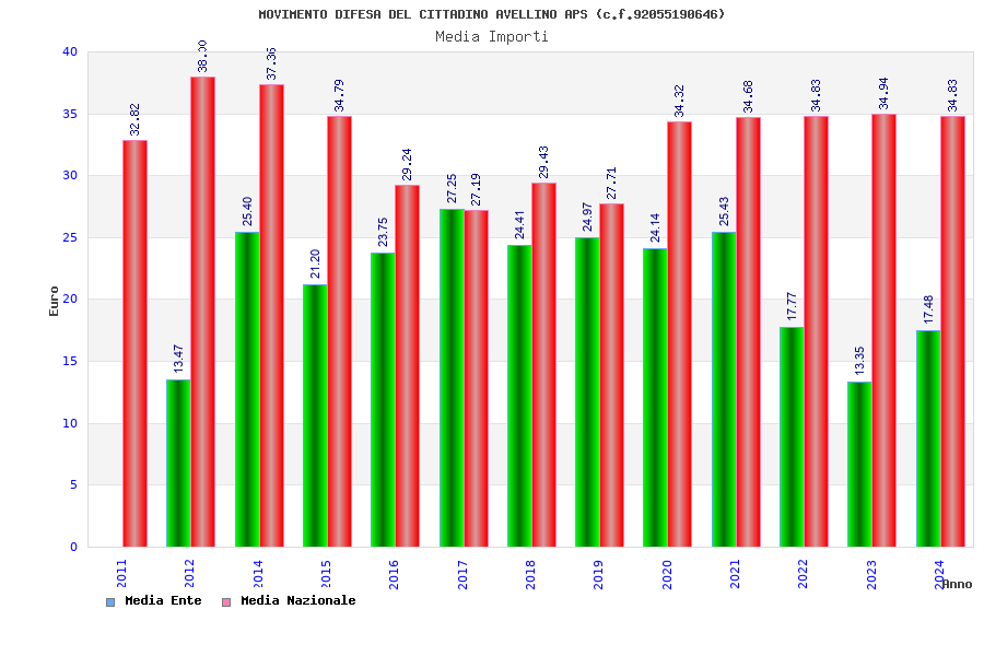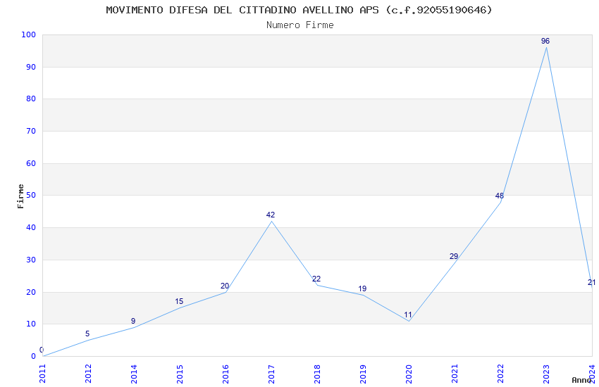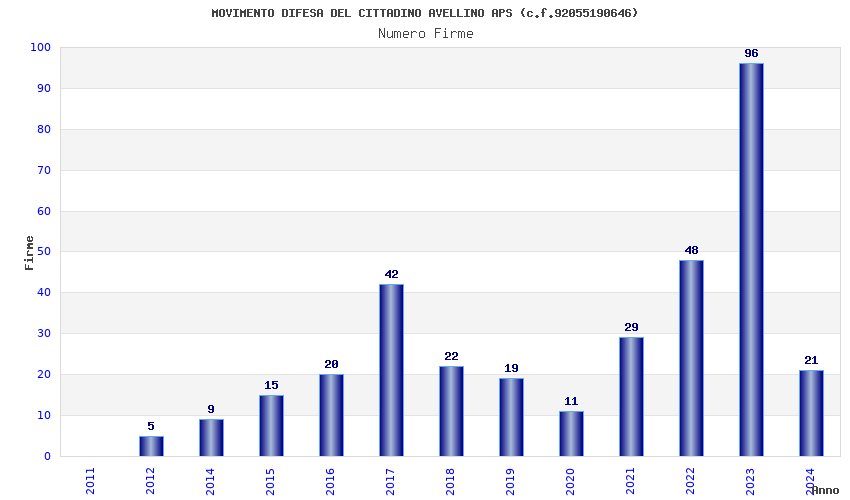 | Anno | Firme | Importi | Media | Naz. | Reg. | Prov. | Comu. |