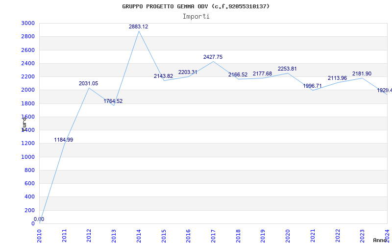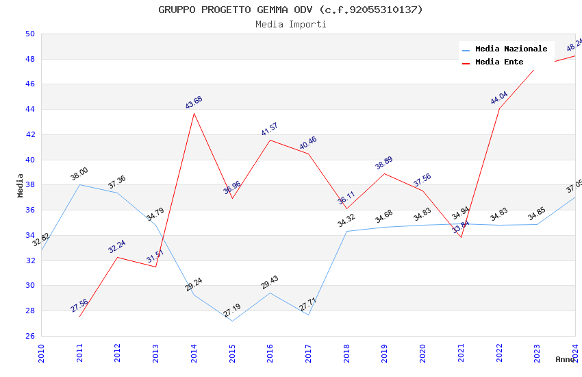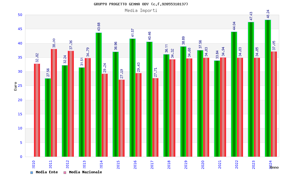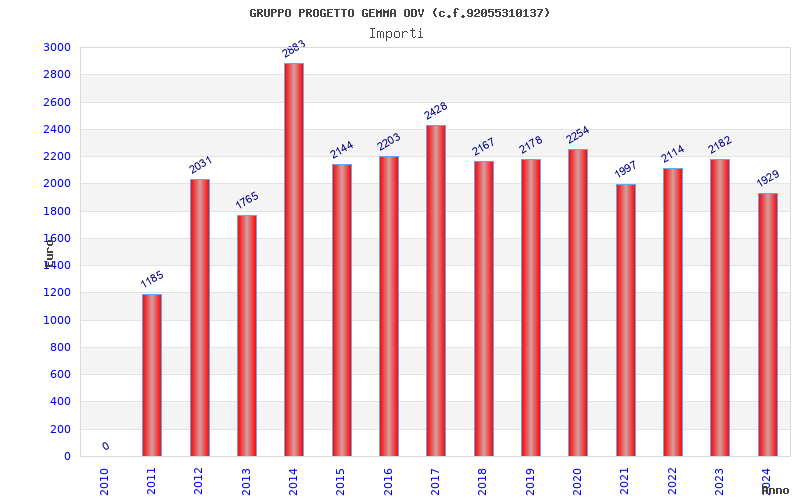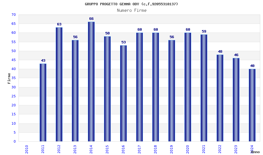 | Anno | Firme | Importi | Media | Naz. | Reg. | Prov. | Comu. |
