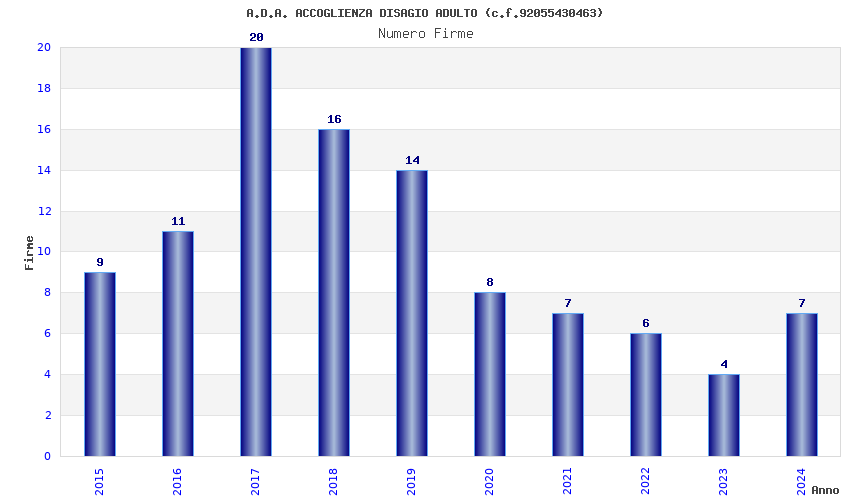 | Anno | Firme | Importi | Media | Naz. | Reg. | Prov. | Comu. |