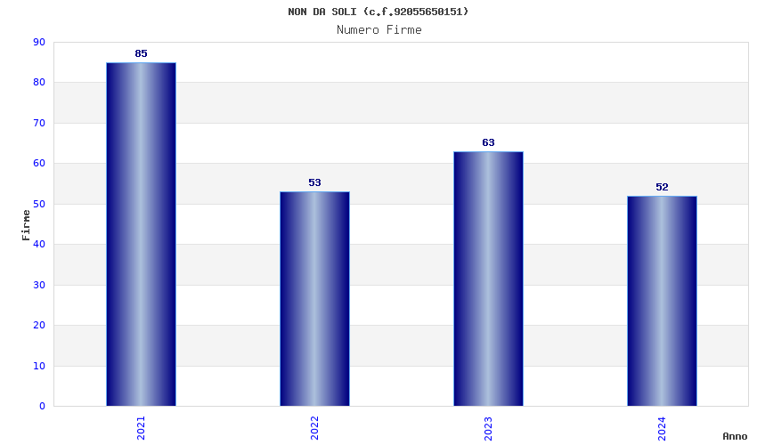 | Anno | Firme | Importi | Media | Naz. | Reg. | Prov. | Comu. |