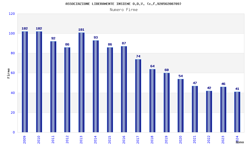 | Anno | Firme | Importi | Media | Naz. | Reg. | Prov. | Comu. |