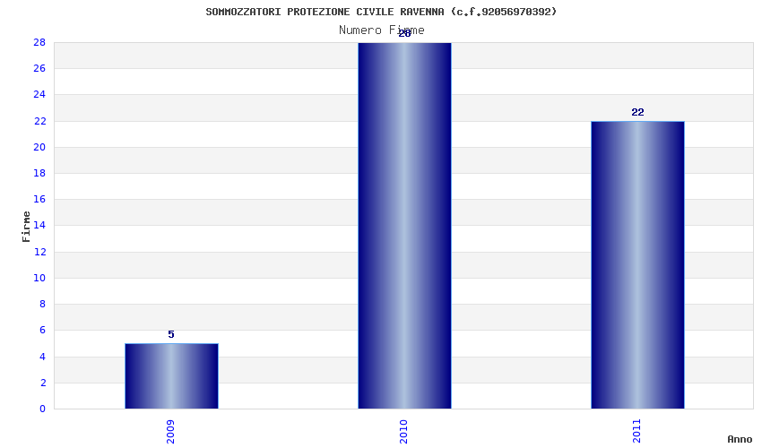 | Anno | Firme | Importi | Media | Naz. | Reg. | Prov. | Comu. |