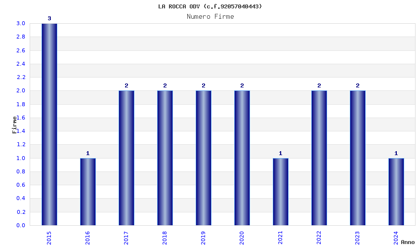 | Anno | Firme | Importi | Media | Naz. | Reg. | Prov. | Comu. |