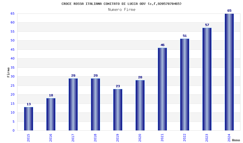 | Anno | Firme | Importi | Media | Naz. | Reg. | Prov. | Comu. |