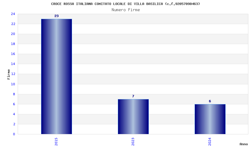 | Anno | Firme | Importi | Media | Naz. | Reg. | Prov. | Comu. |