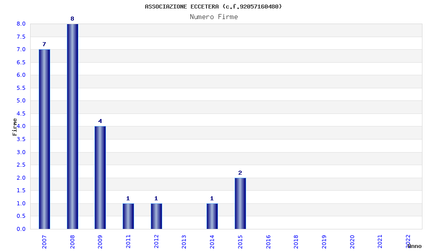 | Anno | Firme | Importi | Media | Naz. | Reg. | Prov. | Comu. |