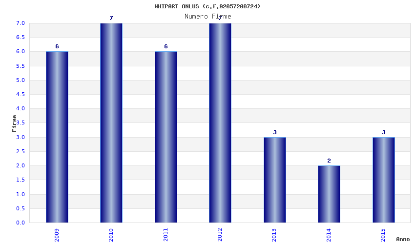 | Anno | Firme | Importi | Media | Naz. | Reg. | Prov. | Comu. |