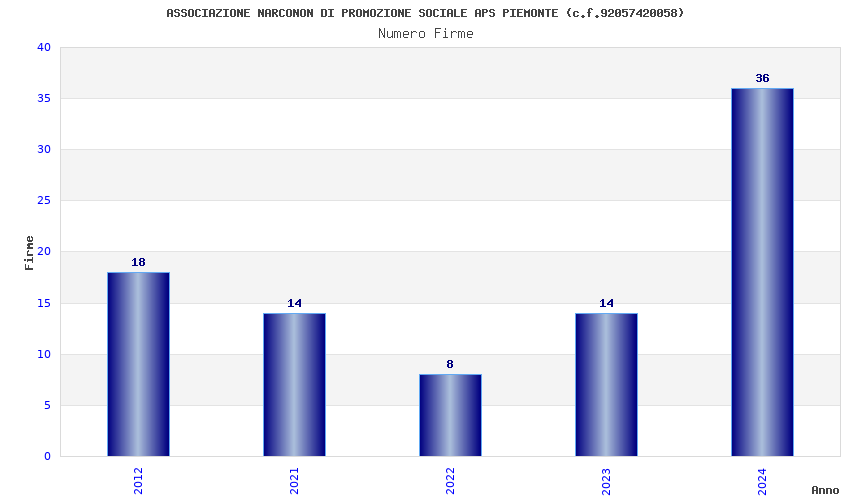 | Anno | Firme | Importi | Media | Naz. | Reg. | Prov. | Comu. |