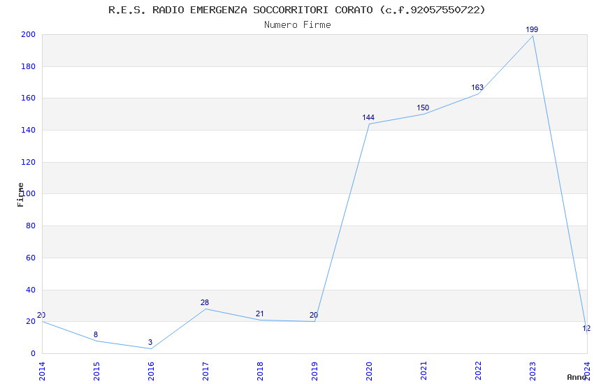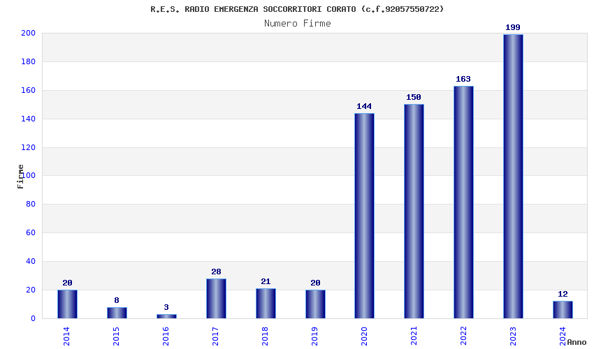 | 2023 | 199 | 3.712,05 | 18,65 | 14.405 | 734 | 264 | 14 |