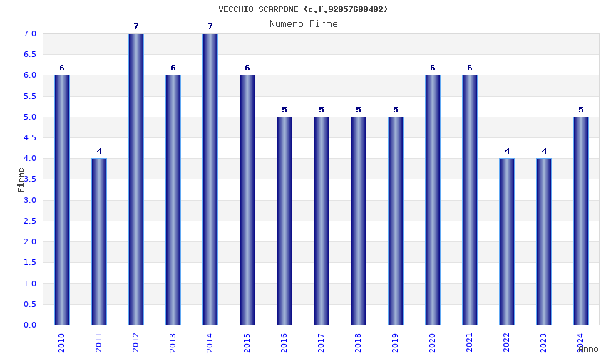 | Anno | Firme | Importi | Media | Naz. | Reg. | Prov. | Comu. |