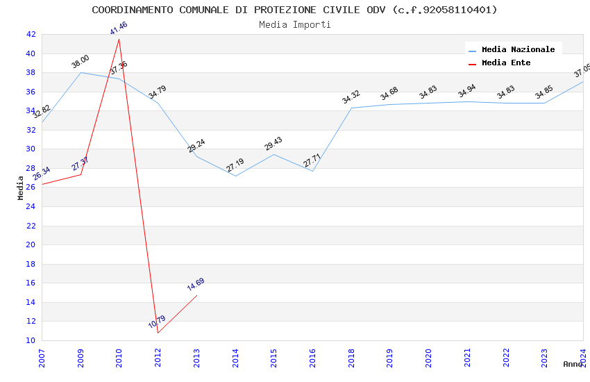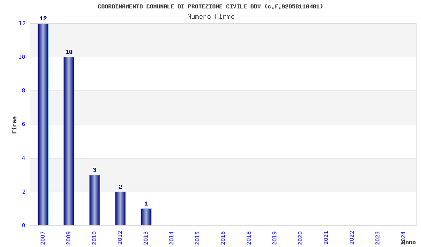 | Anno | Firme | Importi | Media | Naz. | Reg. | Prov. | Comu. |
