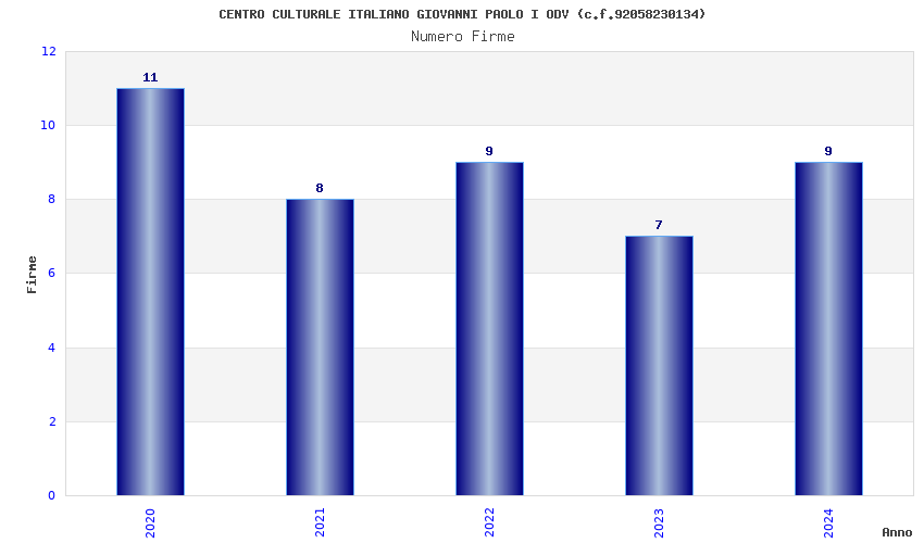 | Anno | Firme | Importi | Media | Naz. | Reg. | Prov. | Comu. |