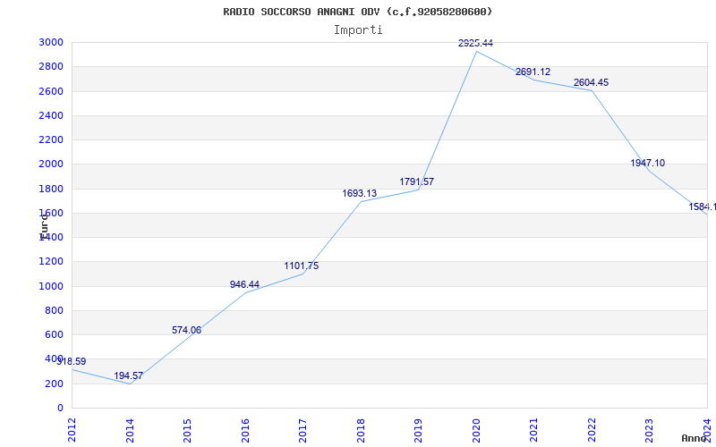 | Anno | Firme | Importi | Media | Naz. | Reg. | Prov. | Comu. |