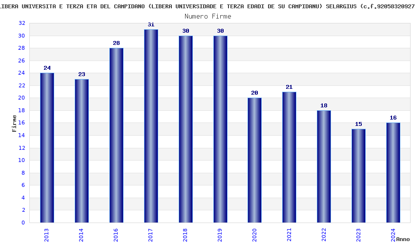 | Anno | Firme | Importi | Media | Naz. | Reg. | Prov. | Comu. |