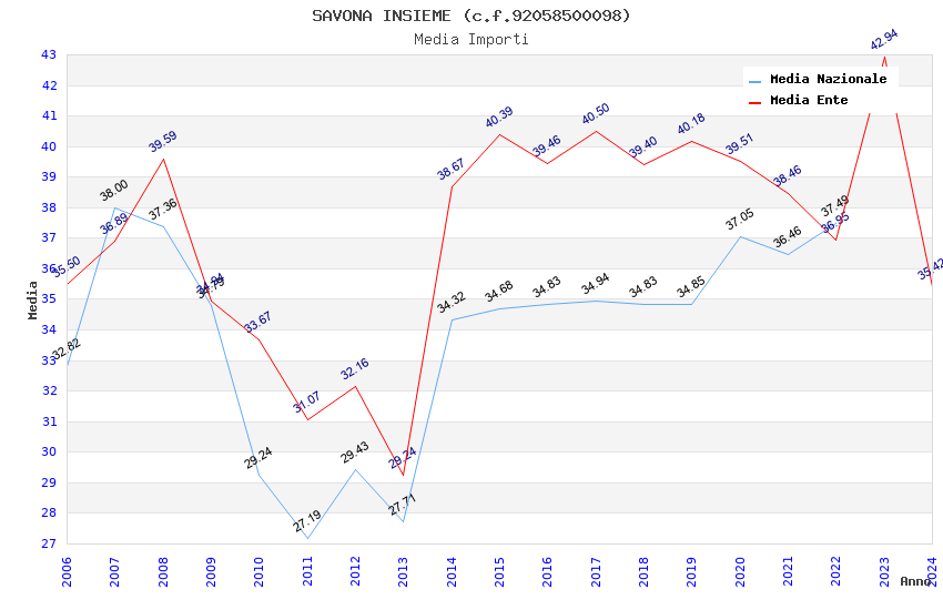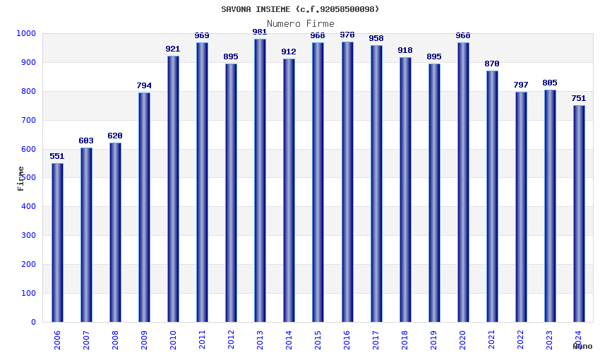 | Anno | Firme | Importi | Media | Naz. | Reg. | Prov. | Comu. |