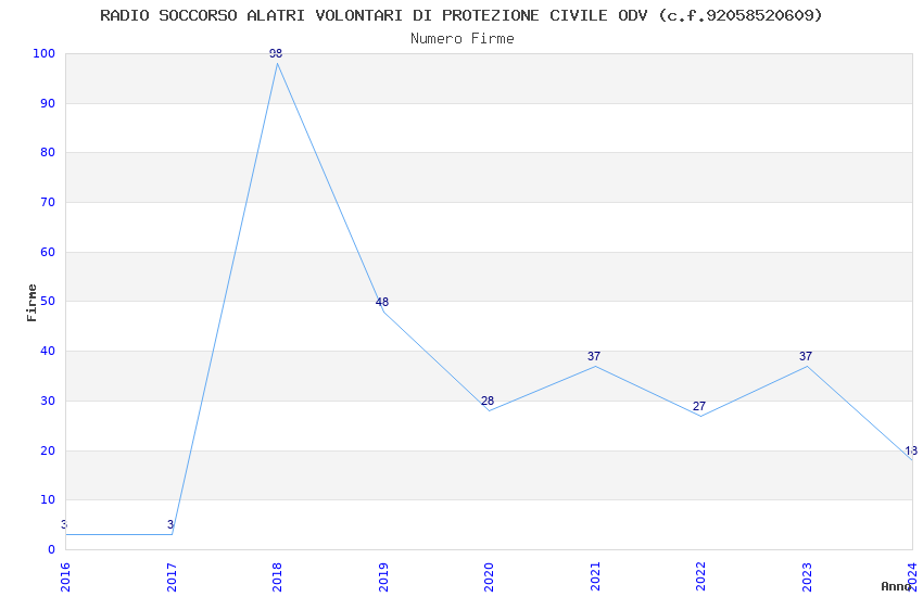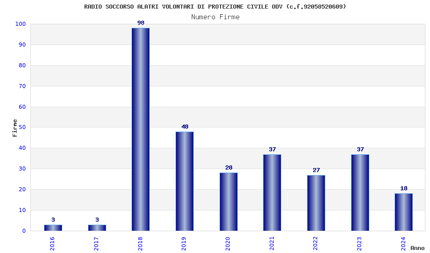 | 2018 | 98 | 2.007,77 | 20,49 | 23.618 | 2.342 | 105 | 6 |