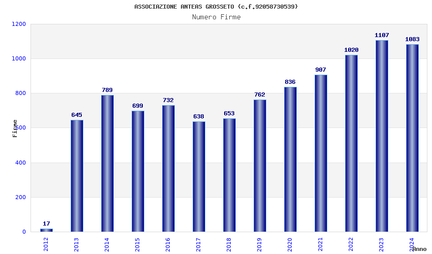 | Anno | Firme | Importi | Media | Naz. | Reg. | Prov. | Comu. |